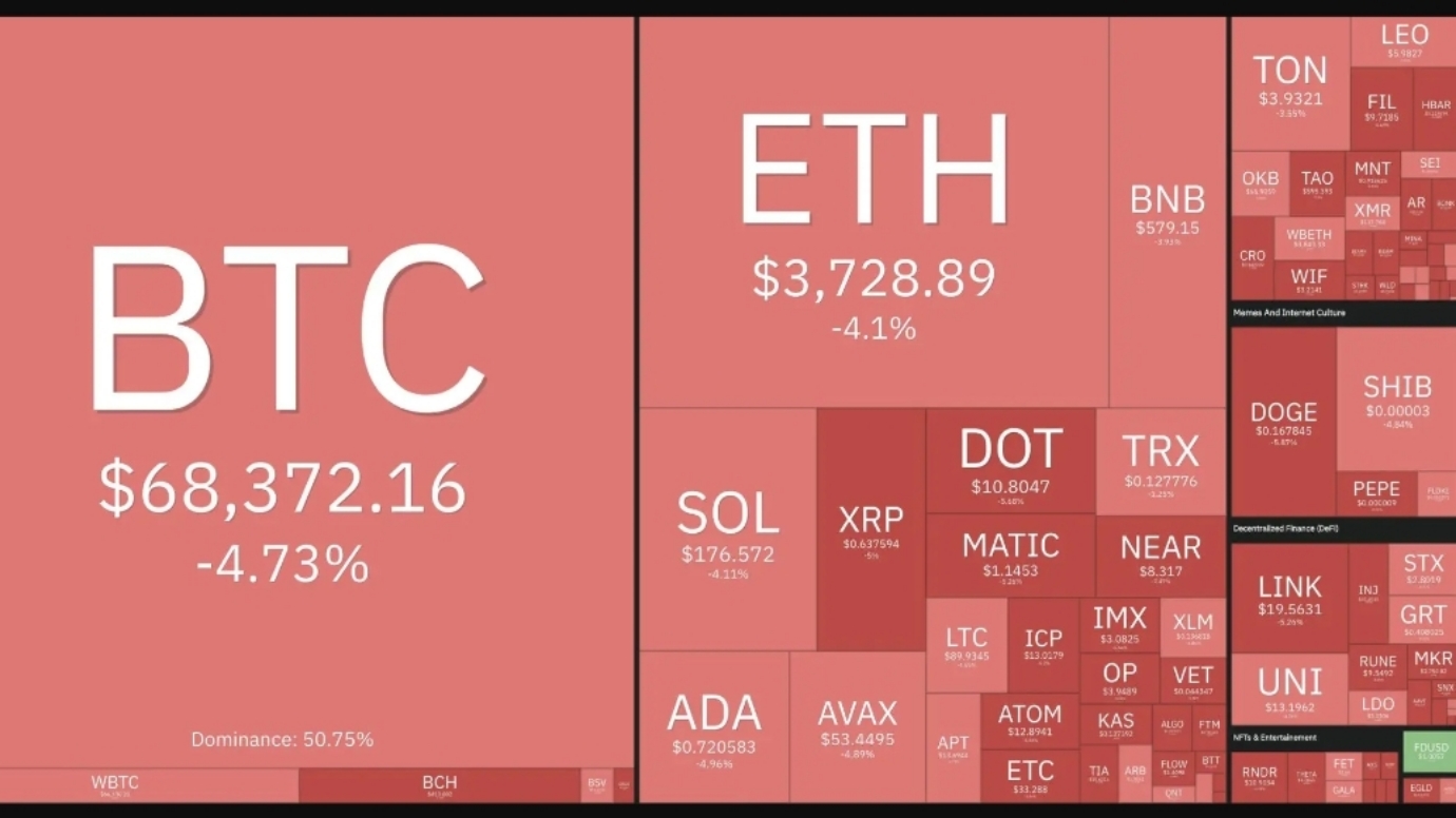 Trong phiên giao dịch sáng nay phe bò Bitcoin đã không thể giữ được mốc 70.000 USD. Cụ thể, tại thời điểm viết bài, giá BTC giao dịch ở mức 68.181 USD, giảm 7% so với 24 giờ qua.