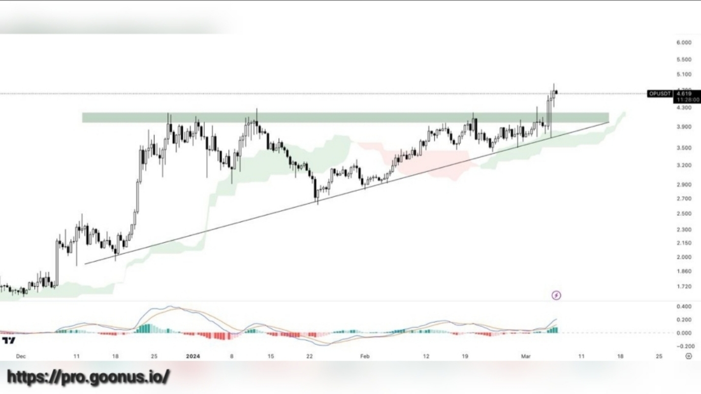 OP đã thoát ra khỏi tam giác tăng dần với khối lượng khá. Đám mây Ichimoku cho thấy xu hướng tăng. Ngoài ra, sự giao nhau của MACD cho thấy đà tăng.