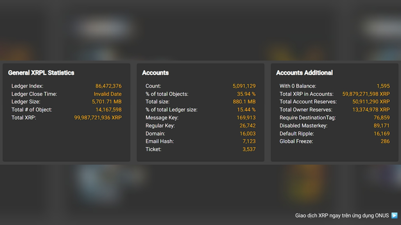 Theo dữ liệu mới nhất được cung cấp bởi dịch vụ XRPL, hiện có 5.091.129 ví chứa 59,879 tỷ token XRP. Mặt khác, hiện có 1.595 ví có số dư bằng 0.