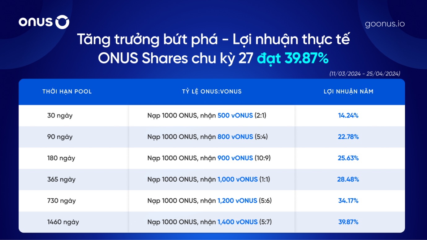 ONUS Shares chu kỳ 27 đã có sự bứt phá mạnh mẽ khi lợi nhuận chia sẻ của chu kỳ này lên tới hơn 3 tỷ VNDC.