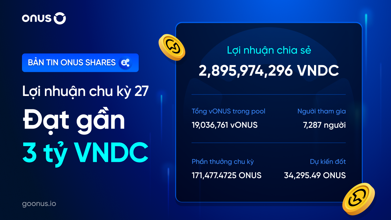 📰 Bản tin ONUS Shares: Lợi nhuận chu kỳ 27 đạt gần 3 tỷ VNDC