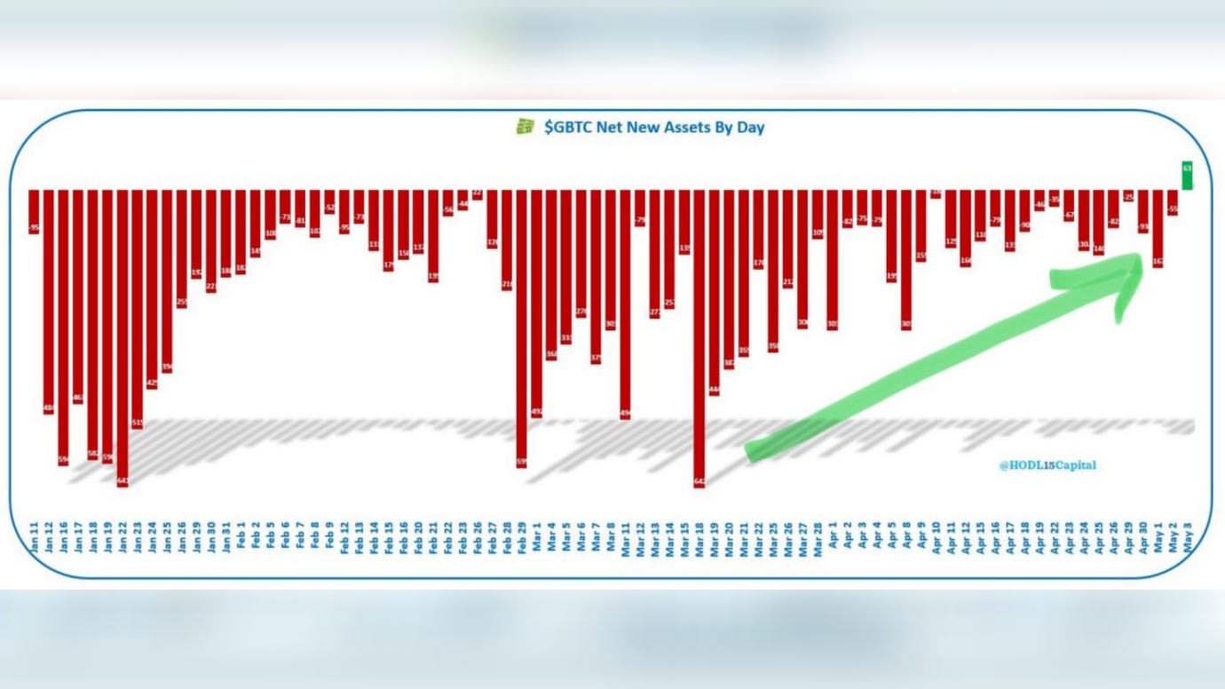 Hôm qua, 03/05/2024 là ngày đầu tiên Grayscale thấy màu xanh với +$63M đổ vào quỹ. Các quỹ khác như BlackRock Fidelity, ARK, Bitwise,… cũng xanh rực rỡ trong phiên qua với hơn +$376M đổ vào