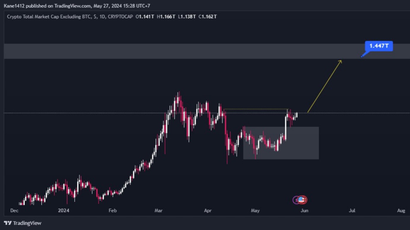 Total2 đồ thị khung ngày D đã mitigate khối Orderflow và đang có xu hướng tăng lên mức tiếp cận tiếp theo sẽ quanh 1.3T- 1.45T đây là dấu hiệu khá tốt cho Altcoin sắp tới nhé!
