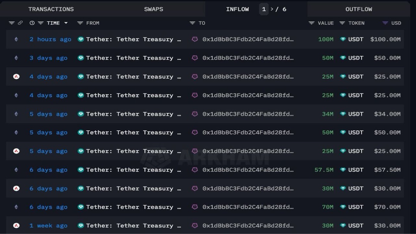 Cumberland đã mint thêm 316 triệu USDT trong vòng 48 giờ qua, nâng tổng số tiền được mint trong 1 tuần lên 491 triệu $USDT.