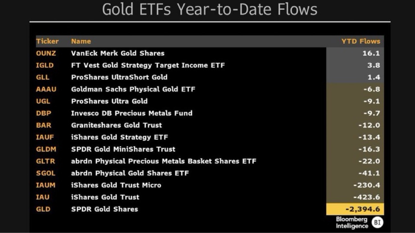 trong khi quỹ ETF vàng đã chứng kiến dòng vốn chảy ra 2,4 tỷ USD tính đến thời điểm hiện tại.