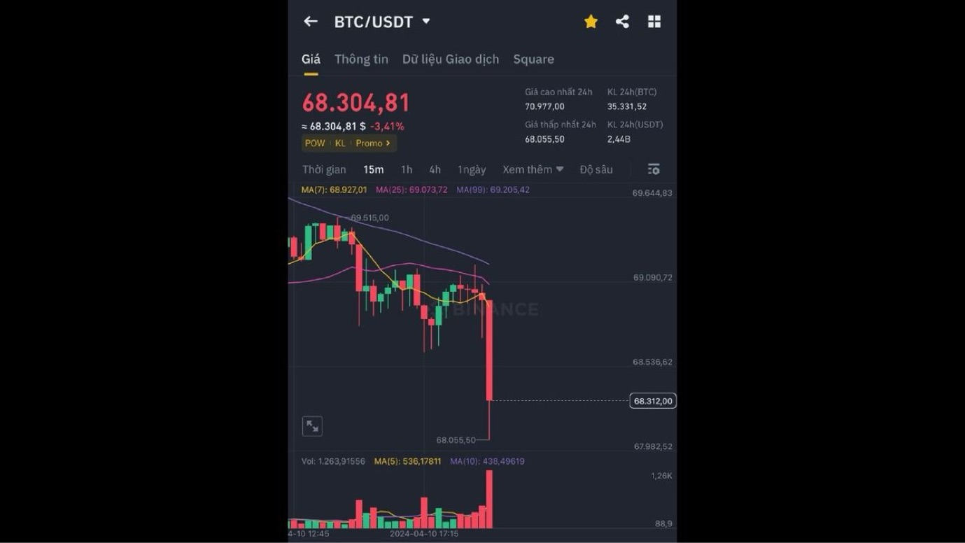 Vào lúc 19:30 ngày 10/04 (theo giờ Việt Nam), Mỹ đã công bố chỉ số CPI tháng 3. Theo đó, chỉ số CPI Y/Y cho kết quả 3.5%, cao hơn dự báo (3.4%) và tháng trước (3.2%). Bitcoin (BTC) ngay lập tức giảm về 68.000 USD sau tin tức này.