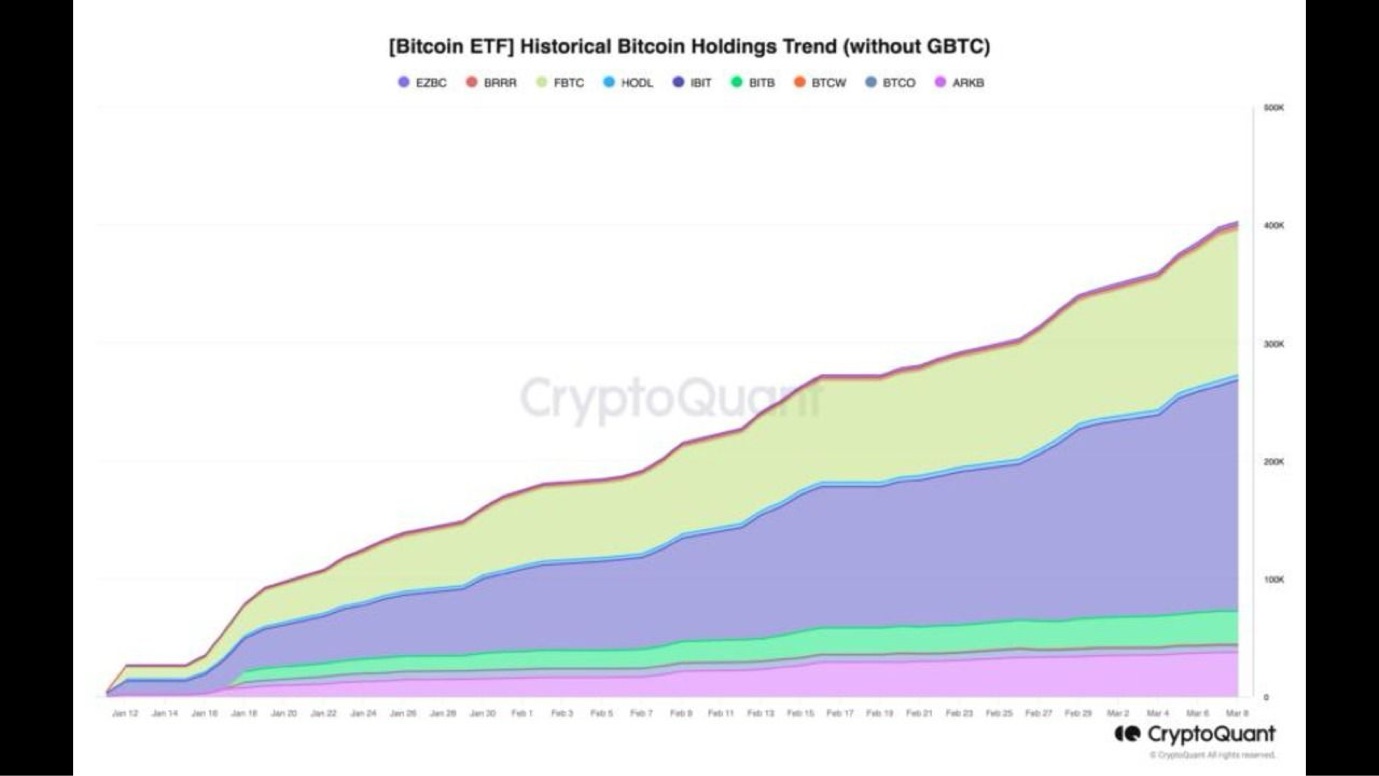 🎯 Sự gia tăng đột biến trong hoạt động giao dịch này đã thúc đẩy sự phát triển của các quỹ Spot BTC ETF, hiện nắm giữ tổng cộng 4% tổng nguồn cung lưu hành của Bitcoin. Điều này góp phần giúp giá Bitcoin đã tăng vọt lên mức cao nhất mọi thời đại mới là $70,000 vào ngày 08/03.