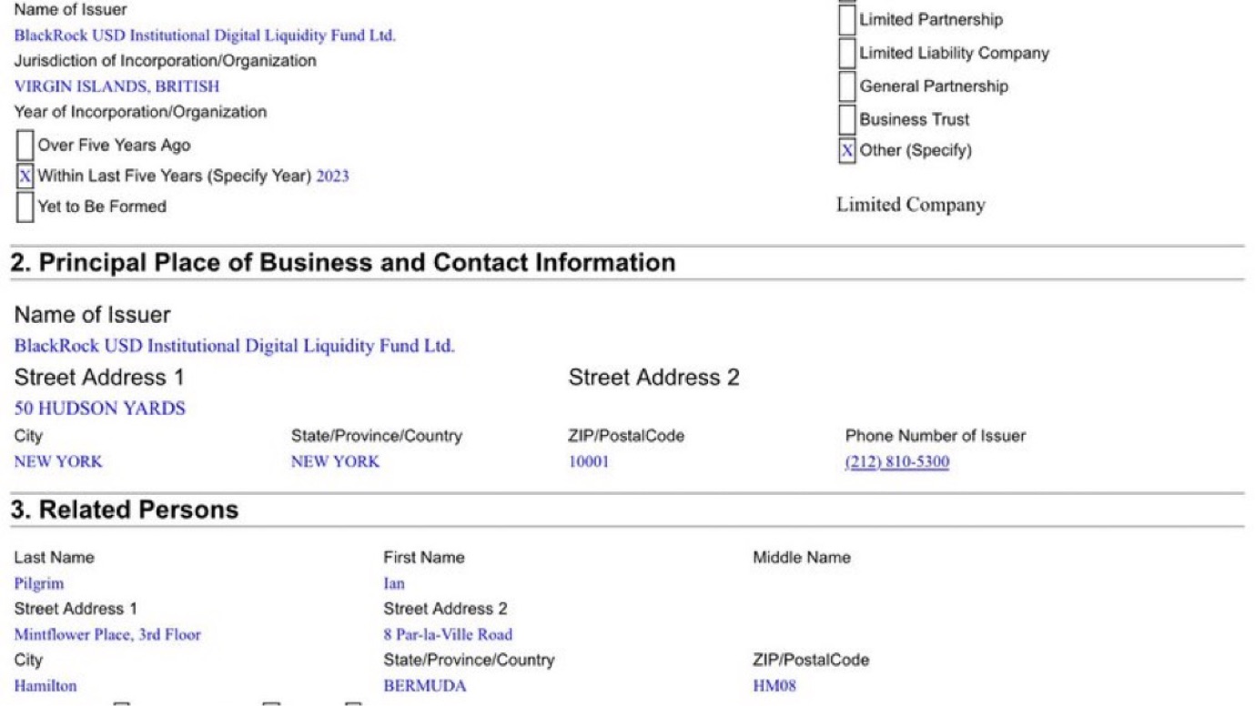 Quỹ BlackRock USD Institutional Digital Liquidity Fund (thanh khoản kỹ thuật số cấp tổ chức) được thành lập tại Quần đảo British Virgin Island và sẽ được ra mắt thông qua quan hệ đối tác với công ty token hóa Securitize.