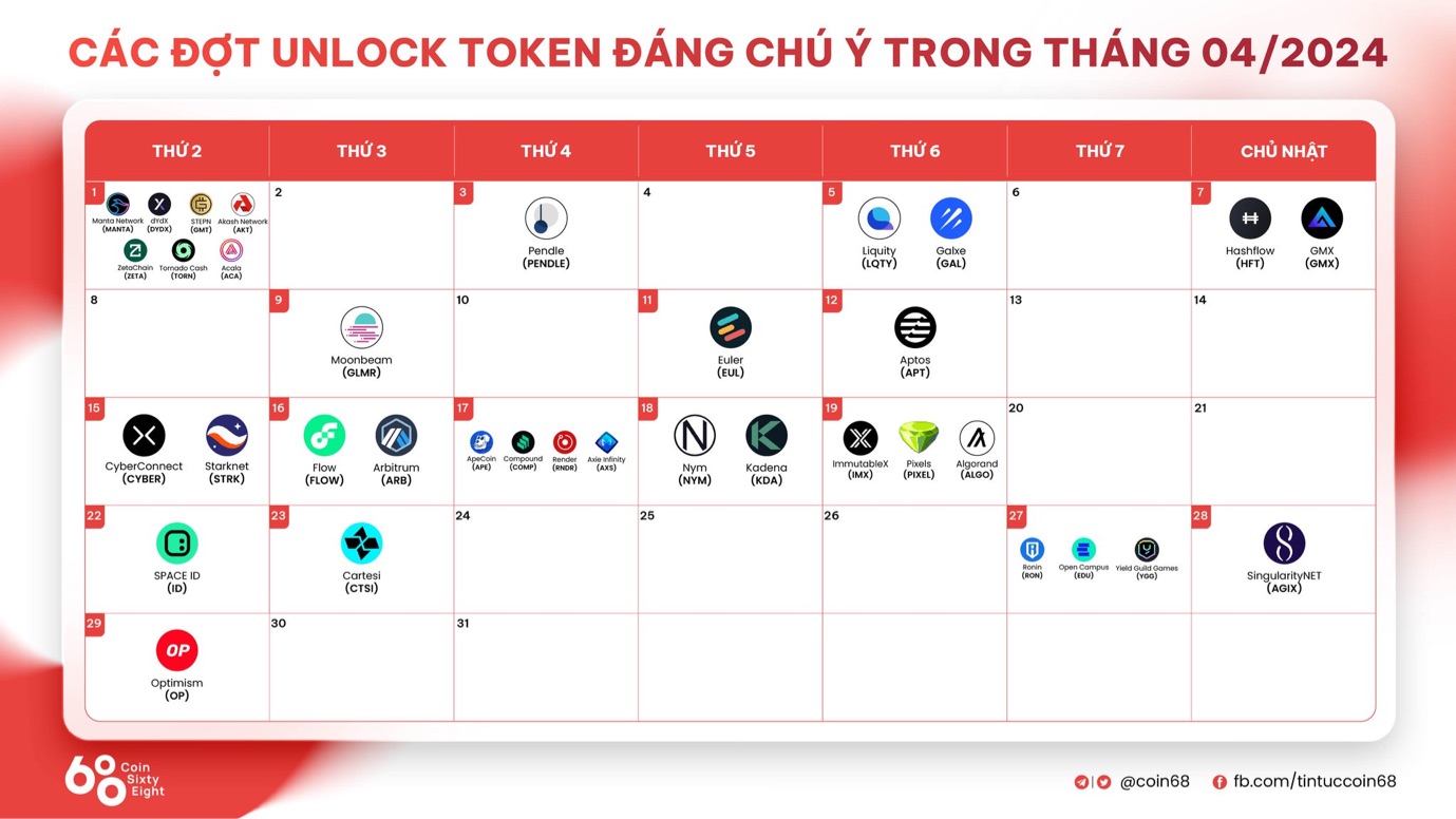Các đợt unlock token đáng chú ý trong tháng 04/2024