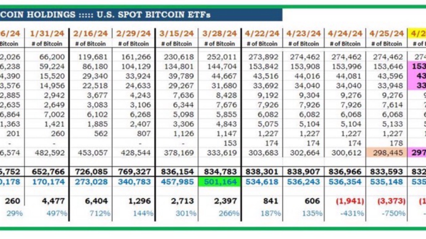 Các quỹ Bitcoin ETF đang lưu trữ bao nhiêu BTC tính đến ngày 26 tháng 4?