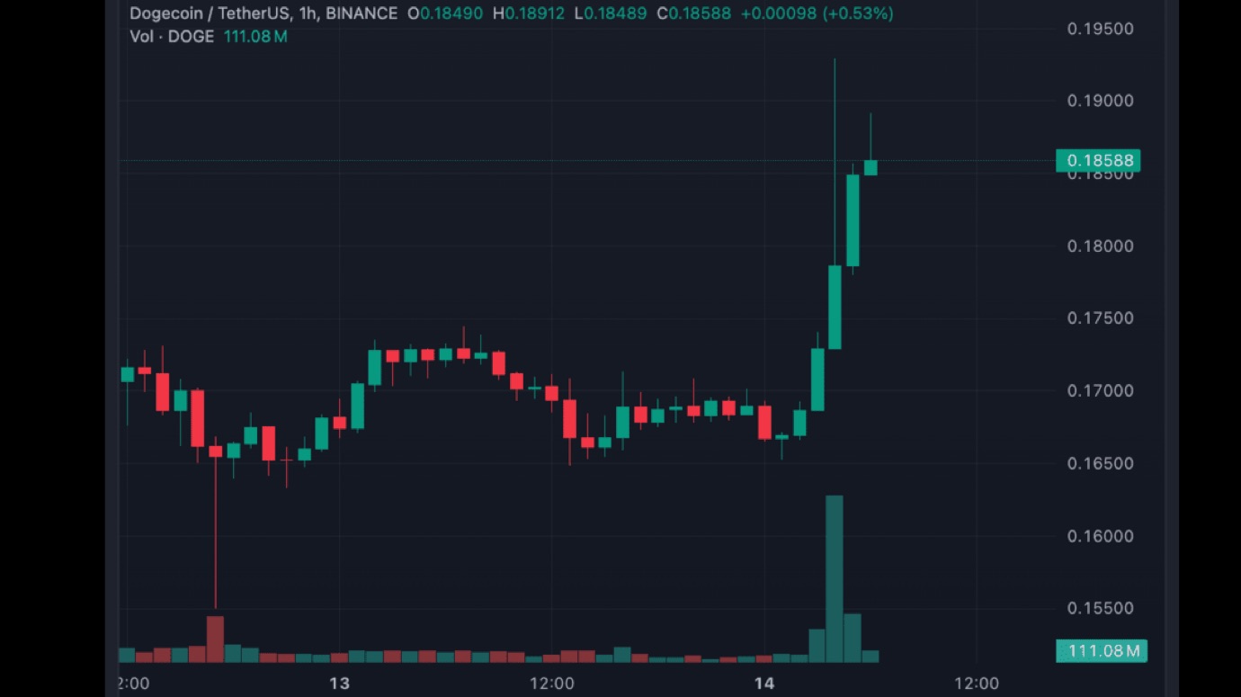 Đây là tin tức tích cực cho cộng đồng DOGE, đẩy giá đồng tiền này lên 0,18 USD và tăng khối lượng giao dịch hơn 20%. Mặc dù vẫn thấp hơn 74,8% so với mức cao nhất mọi thời đại, DOGE đã lọt top 10 tiền điện tử theo vốn hóa thị trường.