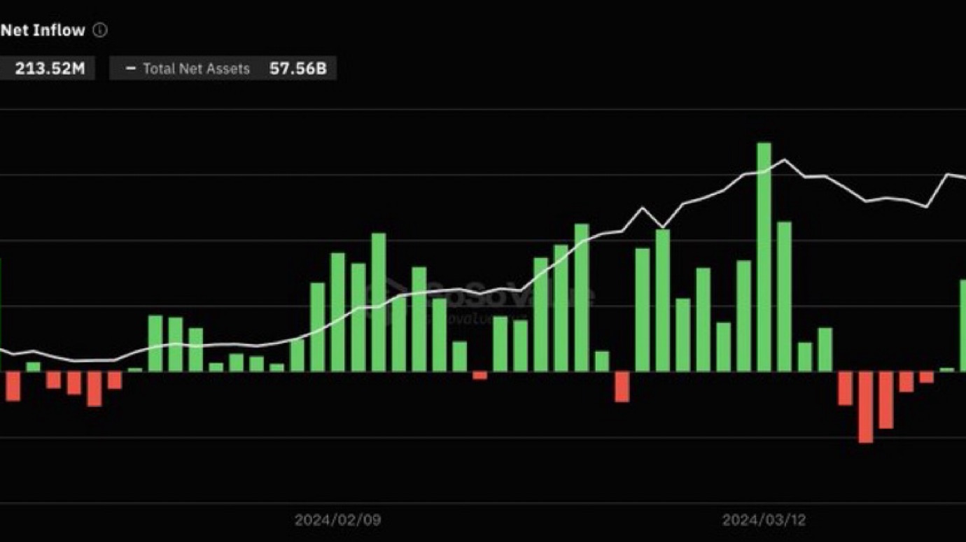 Theo SoSoValue, các quỹ ETF Bitcoin giao ngay đã chứng kiến ​​tổng dòng vốn vào ròng là 213 triệu USD vào ngày hôm qua, đánh dấu ngày thứ ba liên tiếp có dòng vốn vào ròng.