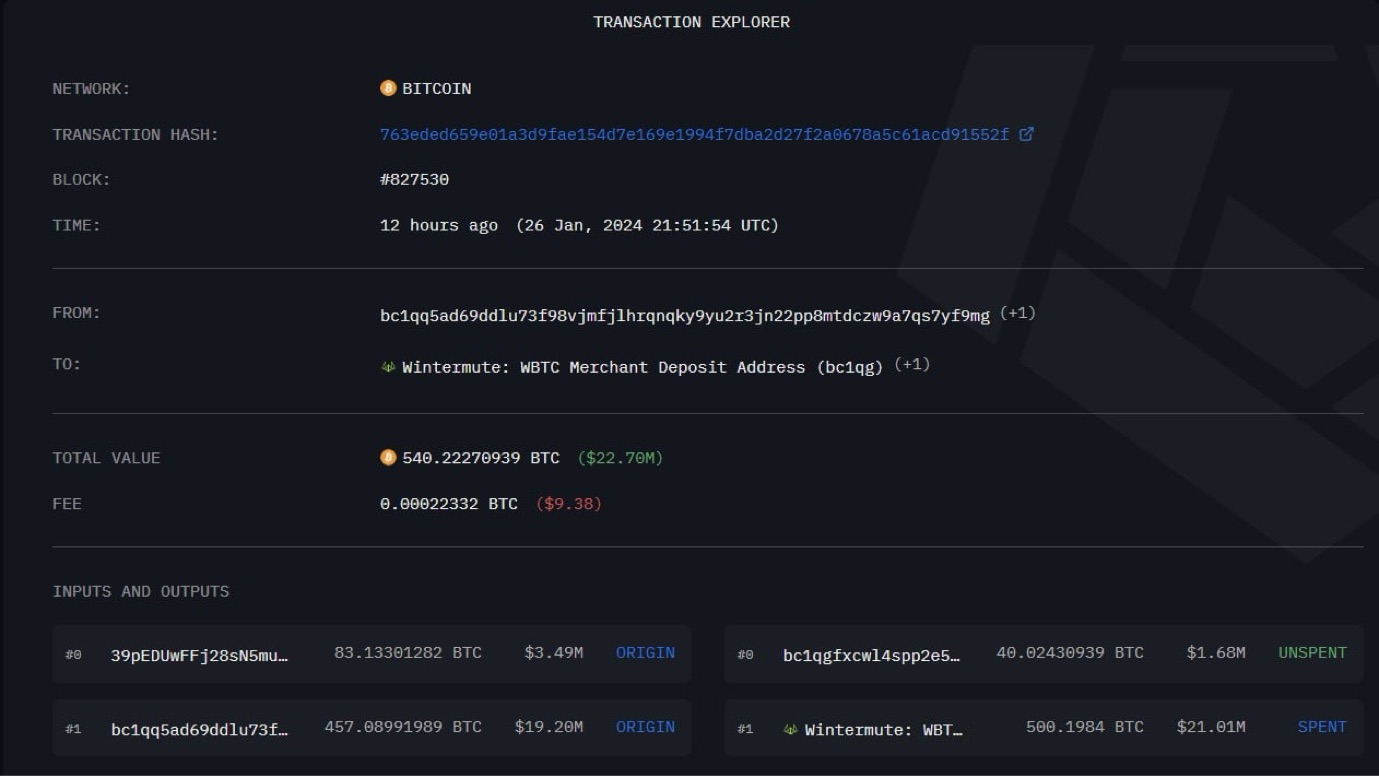 11 tiếng trước, #Wintermute đã chuyển 500 $BTC = 21M$ lên WBTC Merchant Deposit