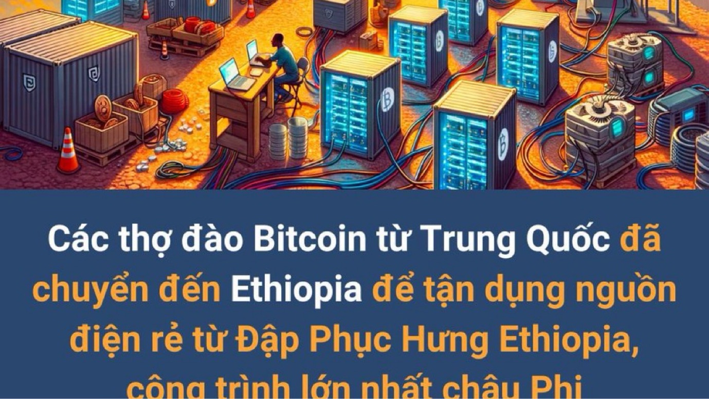 Ethiopia, với giá điện thấp và chính sách mở cửa cho việc đào Bitcoin từ năm 2022 nhưng cấm giao dịch crypto, trở thành điểm đến hấp dẫn cho các công ty đào Trung Quốc.