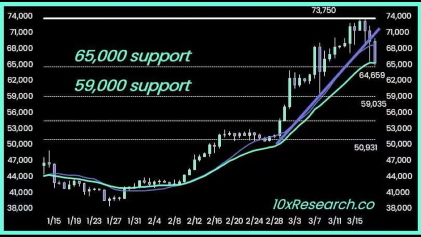 Mặc dù giá Bitcoin đã tạm ổn định quanh mức 67.000 USD, nhưng theo Markus Thielen, nhà sáng lập 10X Research, “thử thách thực sự” sẽ đến vào thứ 2 và thứ 3.