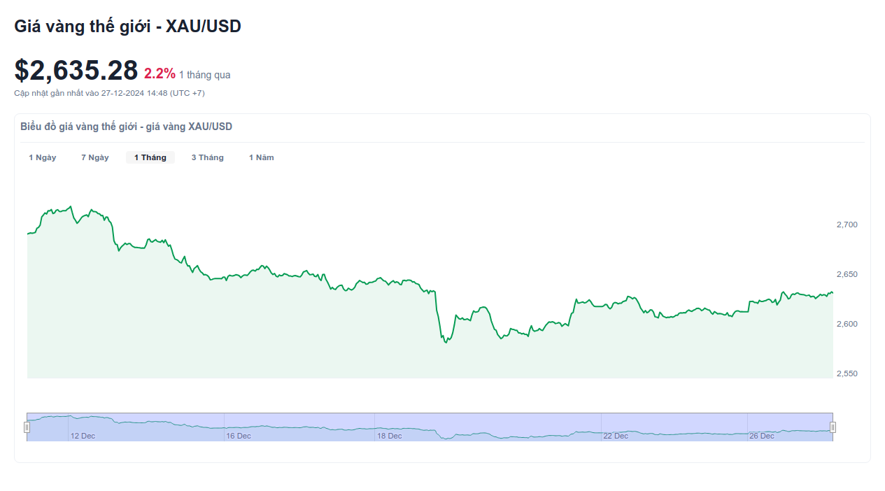 1. Giá vàng thế giới hôm nay: Giao dịch yếu quanh vùng 2,635 USD.