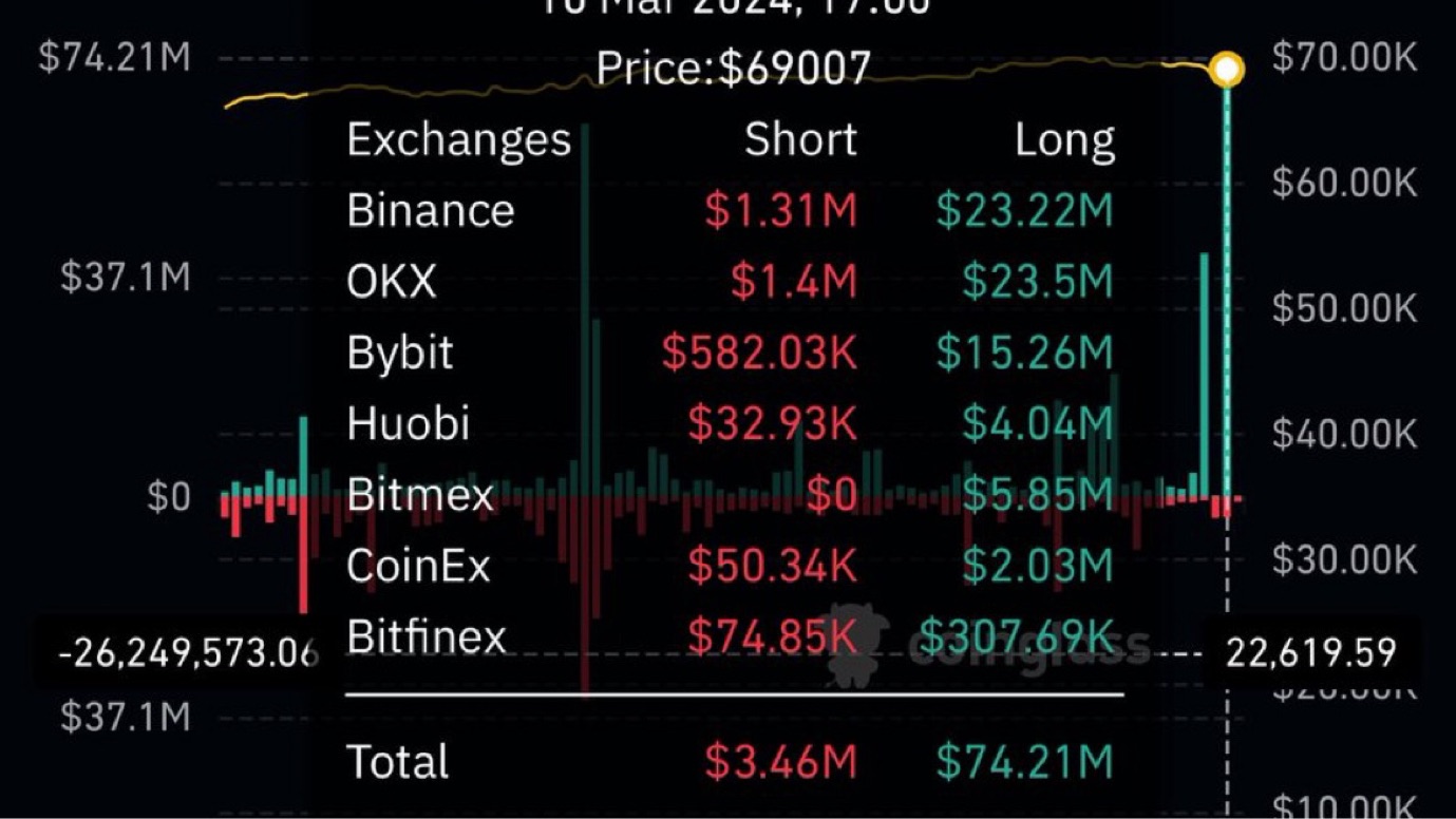 74 triệu USD lệnh long đã bị thanh lý 1 giờ qua… nhìn như thị trường đang muốn săn short.