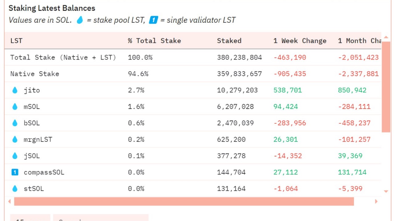 Với 1,4 tỷ USD TVL (~ 10M SOL), Jito chiếm khoảng 38% trong tổng số 3,7 tỷ USD TVL của hệ sinh thái Solana. Marinade đứng thứ hai với 1,37 tỷ USD TVL, tiếp theo là Kamino, Raydium và Marginfi lần lượt là 1 tỷ USD, 613 triệu USD và 424 triệu USD.