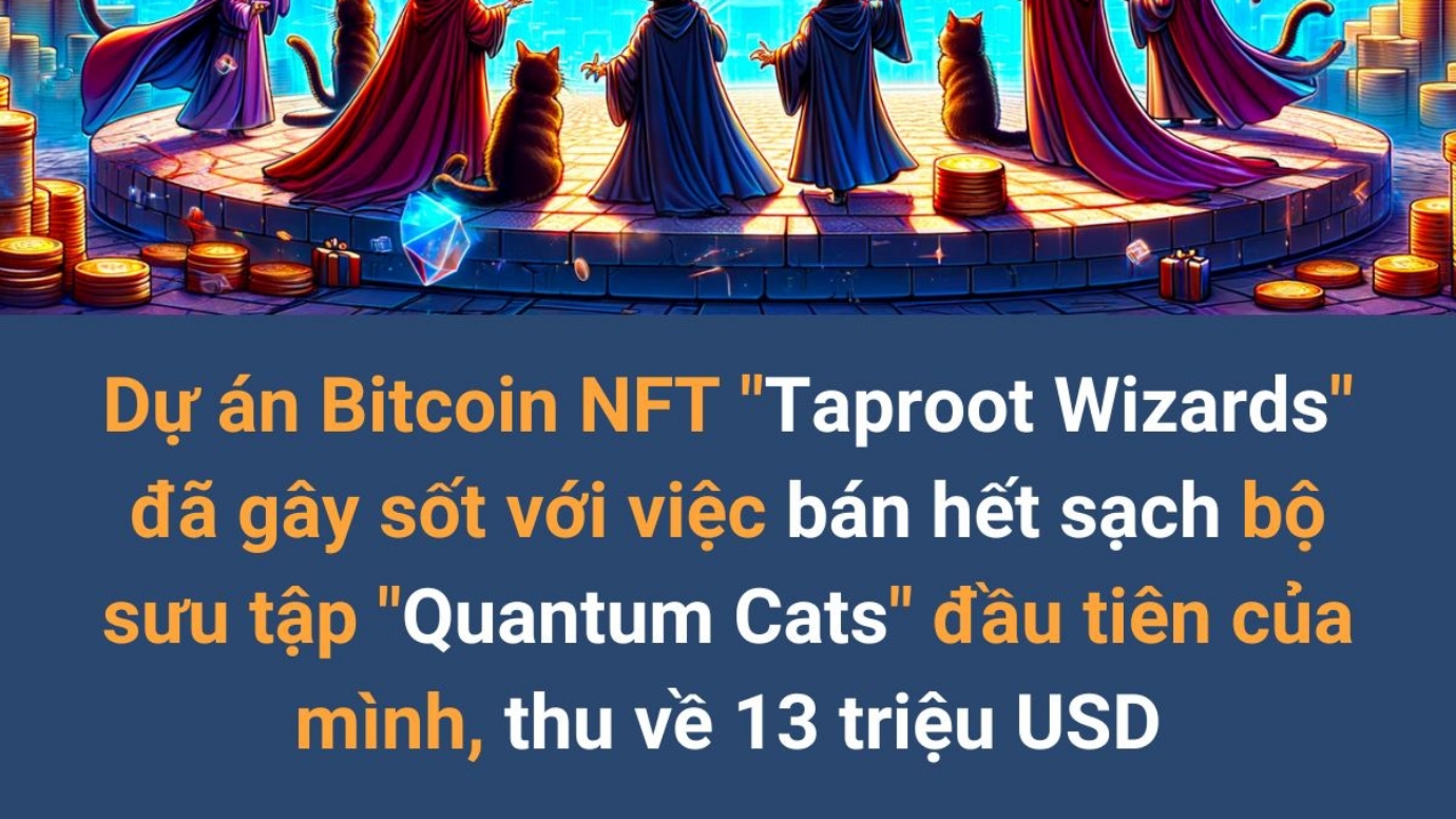 Phần lớn NFT đã được bán cho những nhà đầu tư nằm trong danh sách ưu tiên, trước khi 313 chiếc cuối cùng được bán hết chỉ trong vòng hai giây sau khi mở bán cho công chúng. Taproot Wizards, một trong những dự án tiên phong cho xu hướng Bitcoin Ordinals từ đầu năm 2023, đã tạo ra một bộ sưu tập NFT trên Bitcoin với hình ảnh meme “phù thủy Bitcoin” nổi tiếng từ năm 2013.