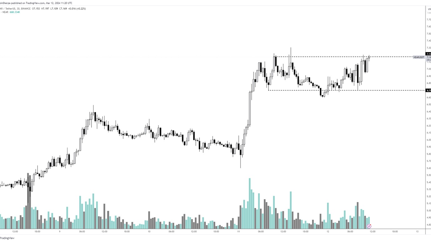 Biểu đồ của Altcoin Sherpa cho thấy NEAR dao động trong khoảng giá $6,7- $7,17. Như nhà phân tích nhấn mạnh, đây là “sự tích lũy đi ngang cho chặng tiếp theo” sắp ra mắt.