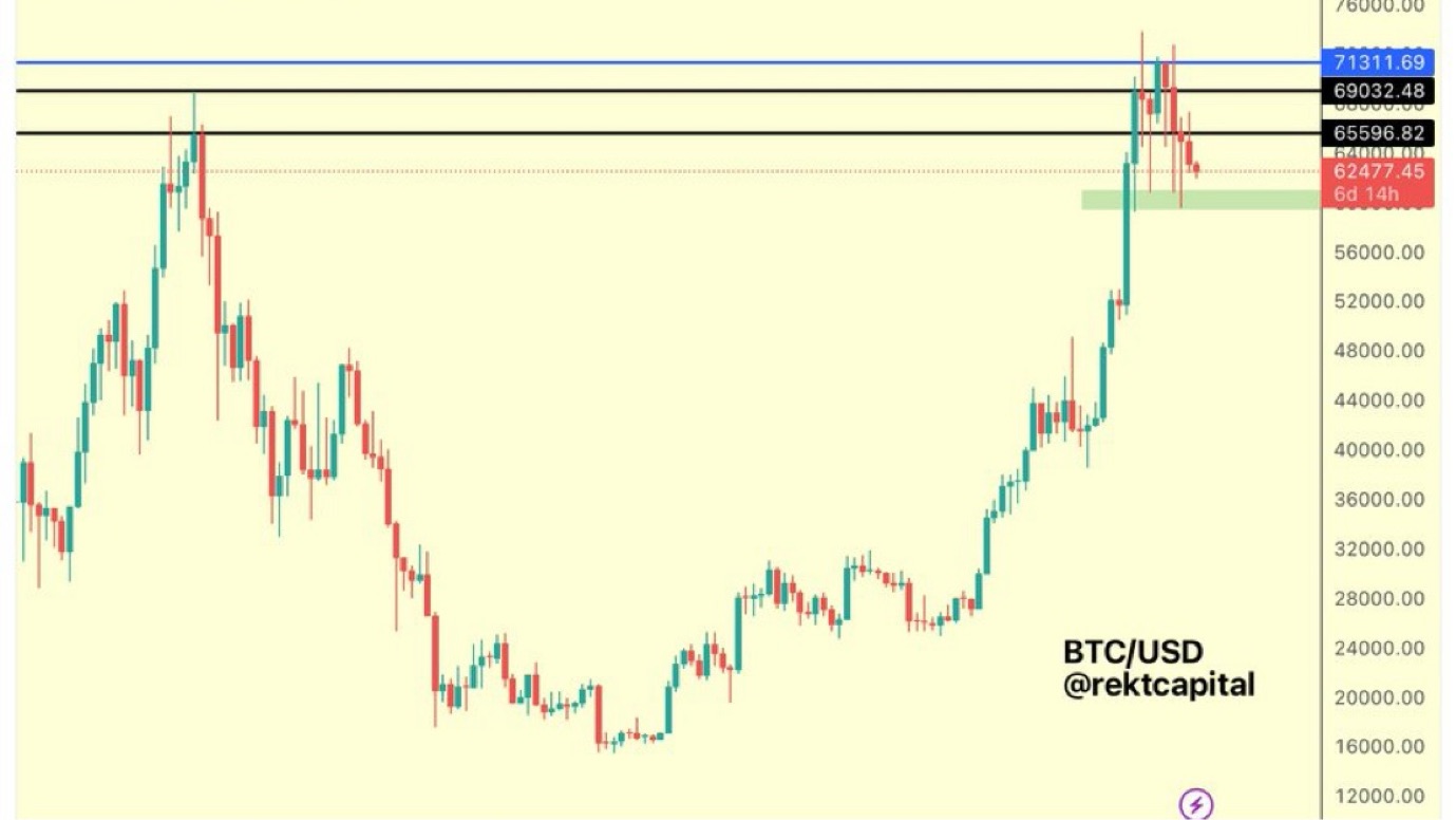 Đóng hàng tuần mới đã xác nhận mức $ 65600 là mức kháng cự mới