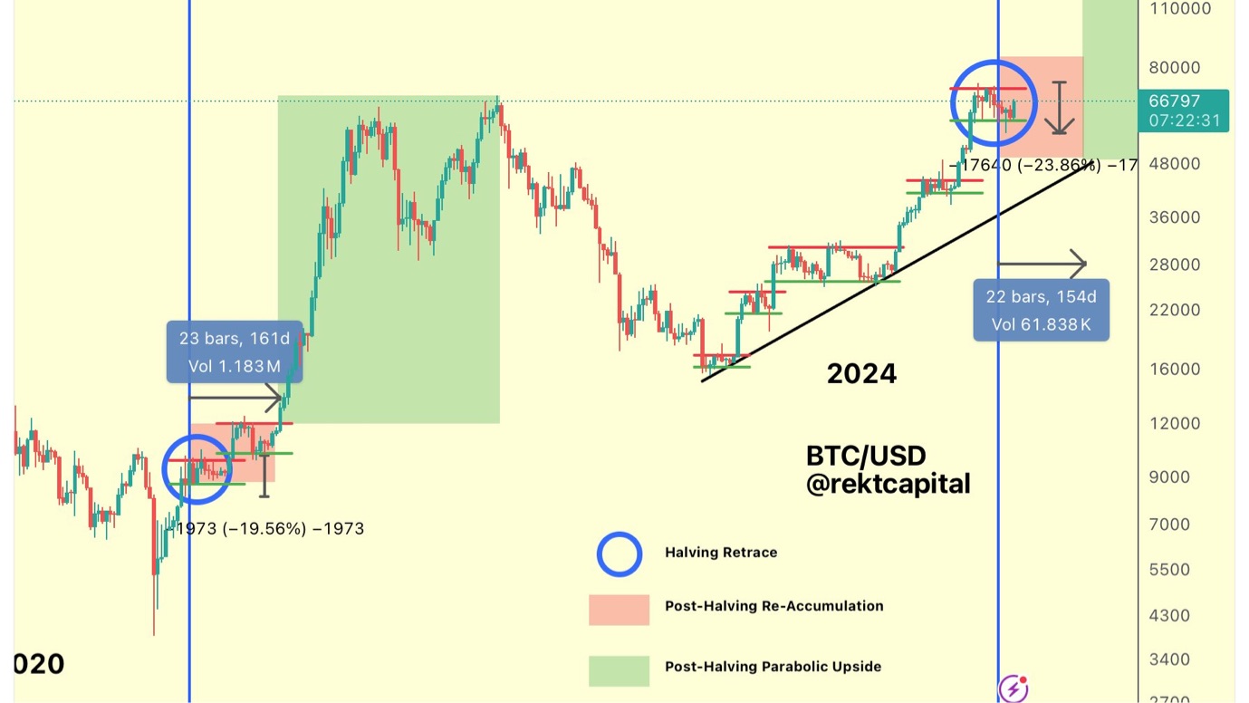 Phạm vi tích lũy lại này phát triển vài tuần trước Halving và kết thúc bằng một đột phá từ nó vài tuần sau Halving