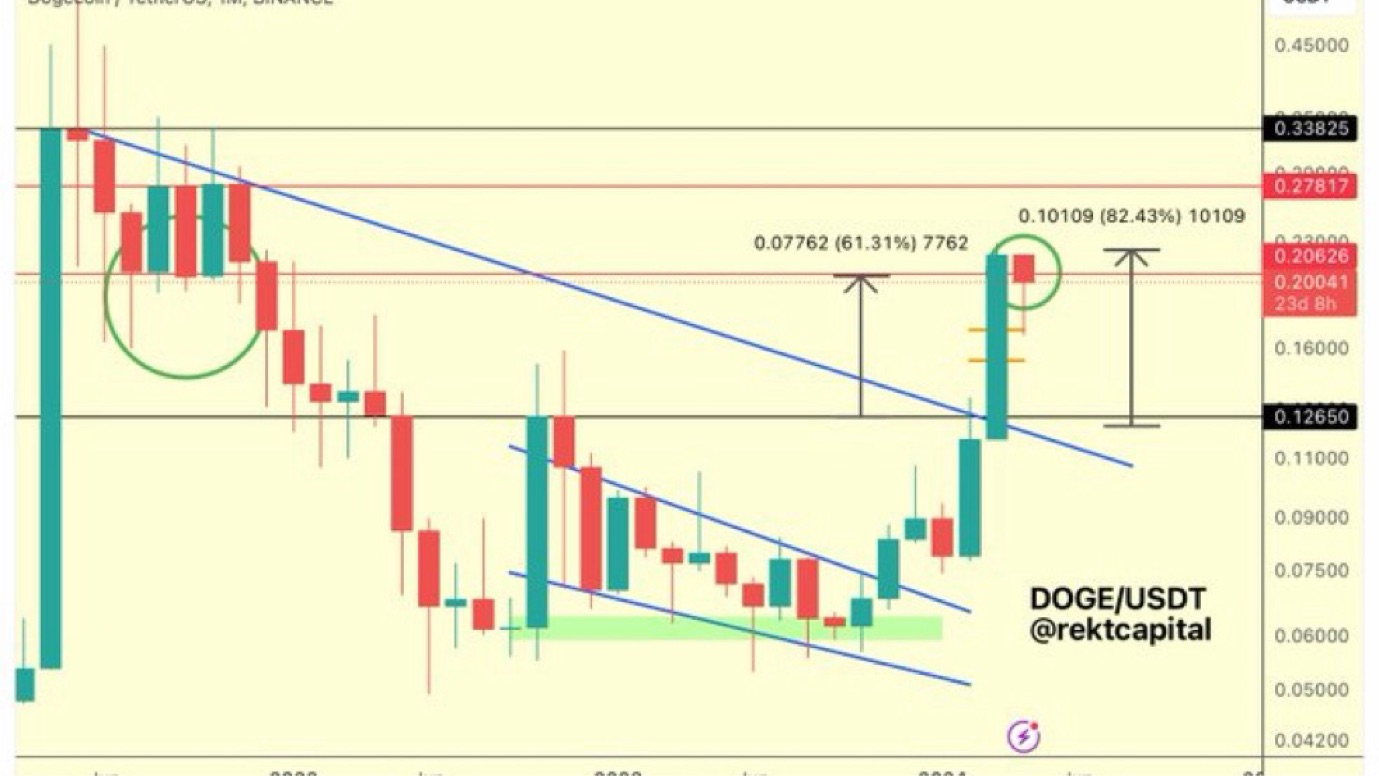 Dogecoin hiện đang trong giai đoạn kiểm tra lại mức đỏ 0,20 đô la trên khung thời gian hàng tháng