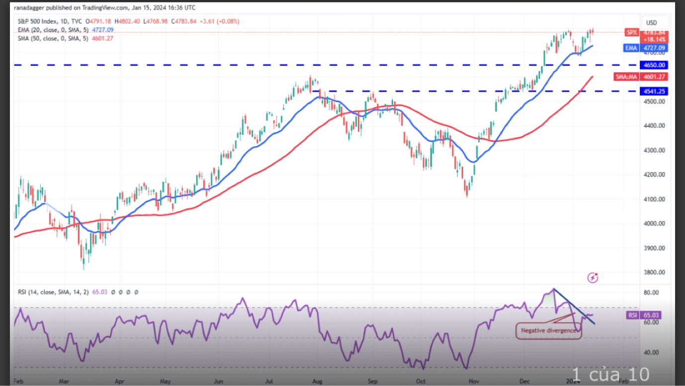 Chỉ số S&P 500 (SPX) đã tăng từ đường trung bình động hàm mũ 20 ngày (4.727) vào ngày 8 tháng 1, cho thấy xu hướng tăng vẫn còn nguyên và các trader coi mức giảm là cơ hội mua.