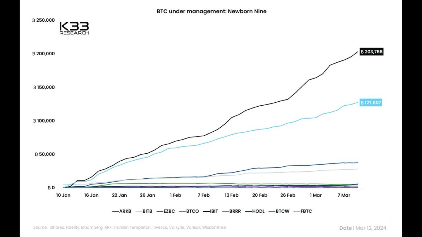 Tổng cộng chín quỹ Spot BTC ETF mới ra mắt – không bao gồm quỹ GBTC được chuyển đổi của Grayscale – nắm giữ tổng cộng hơn 420.000 BTC.