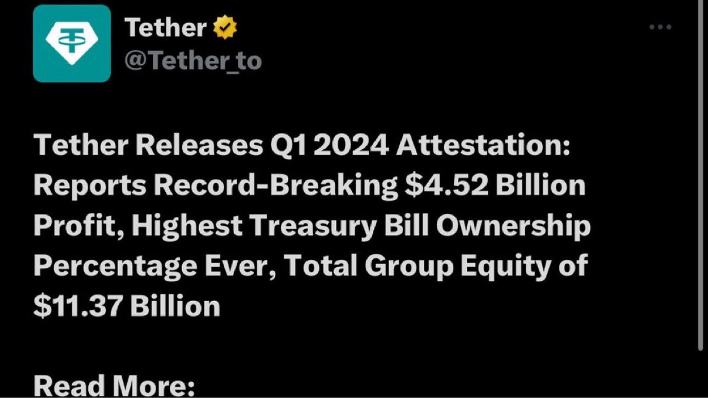 Tether lãi 4.52 tỷ lỗ quý 1 năm 2024
