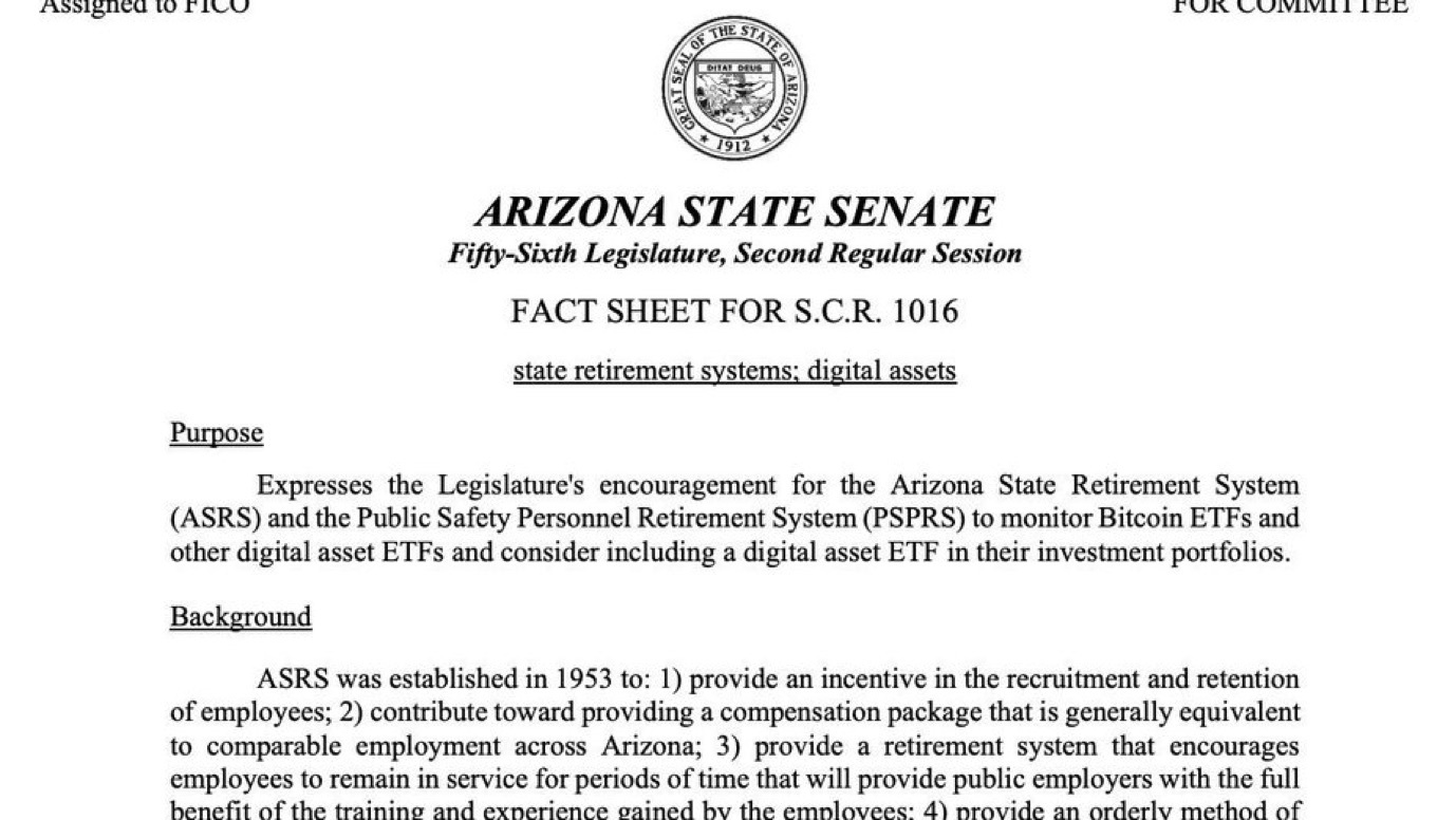 Thượng viện bang Arizona 🇺🇸 đang xem xét việc đầu tư một phần của quỹ hưu trí của bang vào Bitcoin Spot ETF.