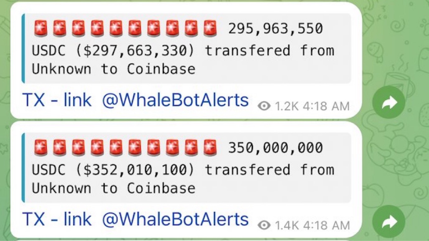 Tổng cộng 1,3 tỷ đô la USDC đã được chuyển từ các địa chỉ cá voi tới sàn Coinbase.