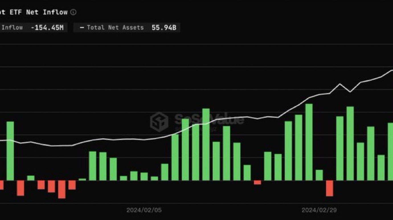 Theo SoSoValue, tổng dòng tiền chảy ra ròng của các quỹ ETF Bitcoin giao ngay vào ngày 18 tháng 3 là 154 triệu USD, dòng tiền ra ròng trong một ngày đầu tiên sau 11 ngày giao dịch.