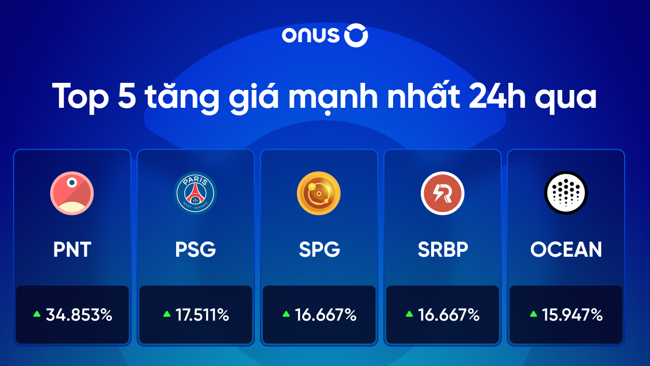 Top 05 tài sản tăng giá mạnh nhất 24h qua
