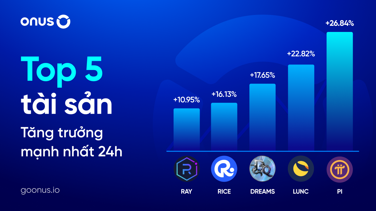 Top 05 tài sản tăng trưởng mạnh nhất 24h