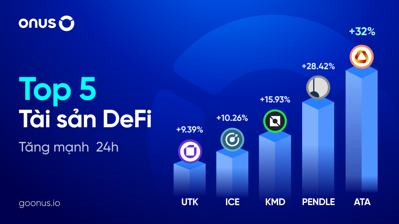 Dẫn đầu danh mục DeFi, đồng thời dẫn đầu top Tăng giá trên ứng dụng ONUS là ATA, token tiện ích hoạt động chính thức trong mạng lưới Automata Network.