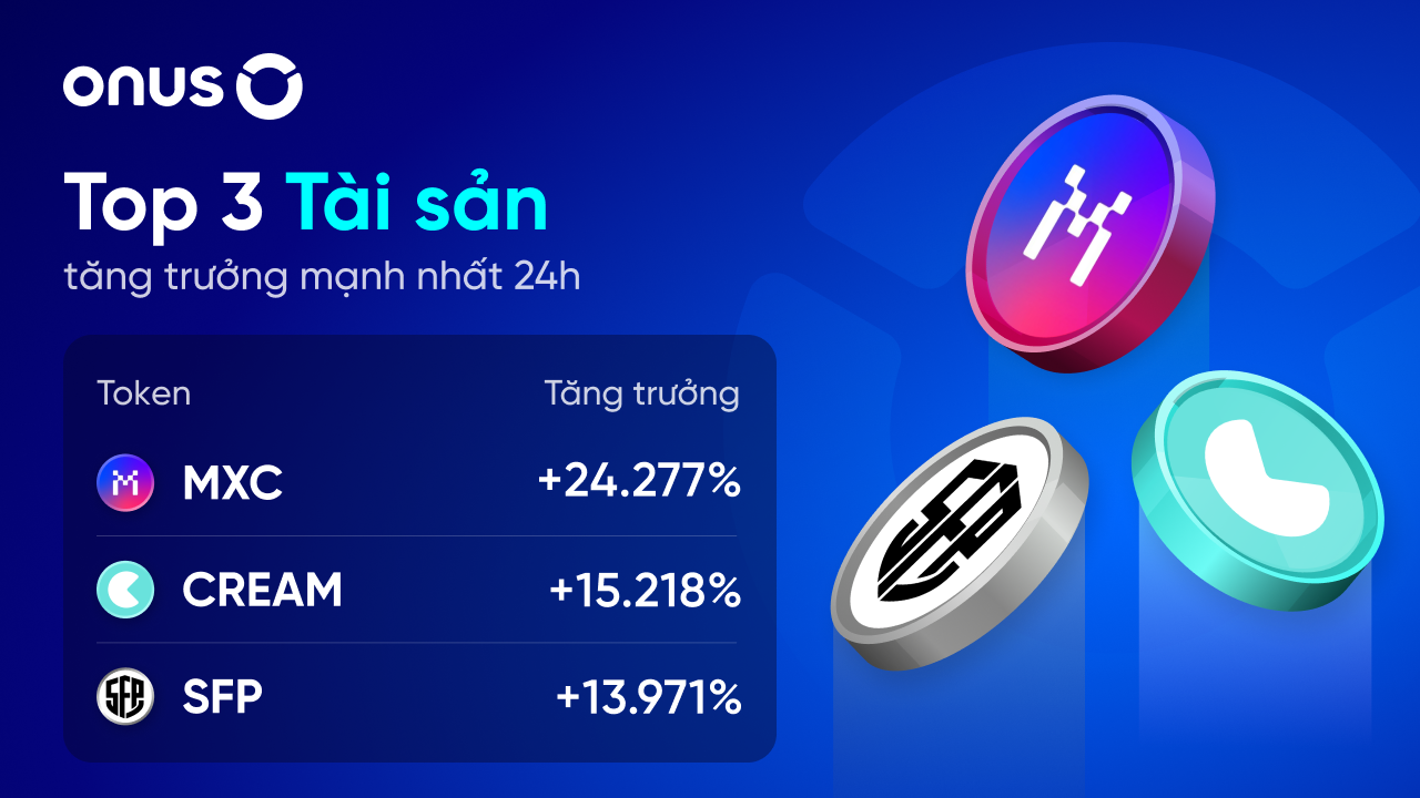 Top 3 tài sản tăng trưởng mạnh nhất 24h