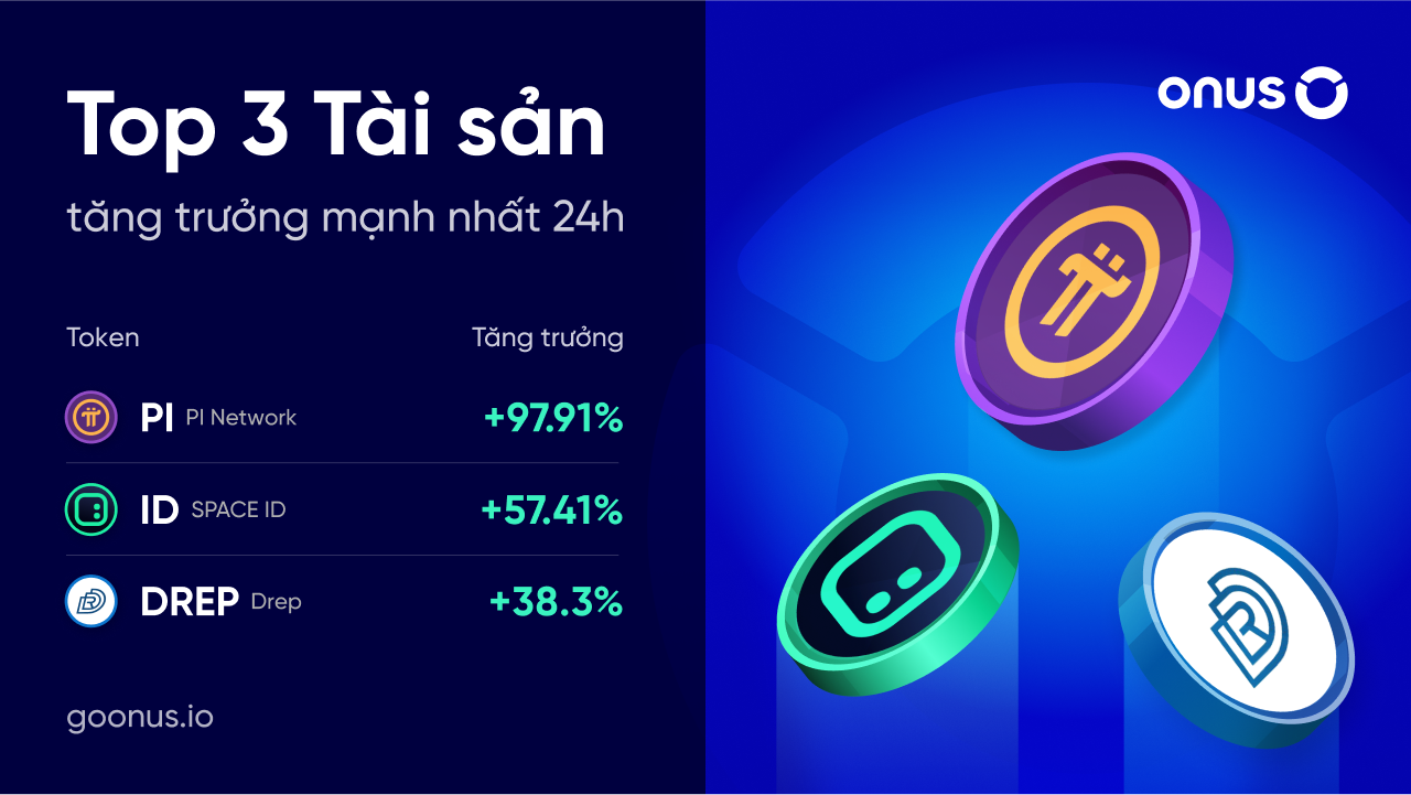 Top 3 tài sản tăng trưởng mạnh nhất 24h