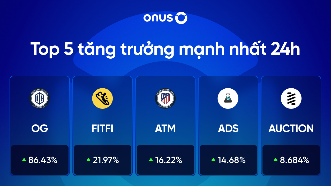 Top 5 tài sản tăng trưởng mạnh nhất 24h