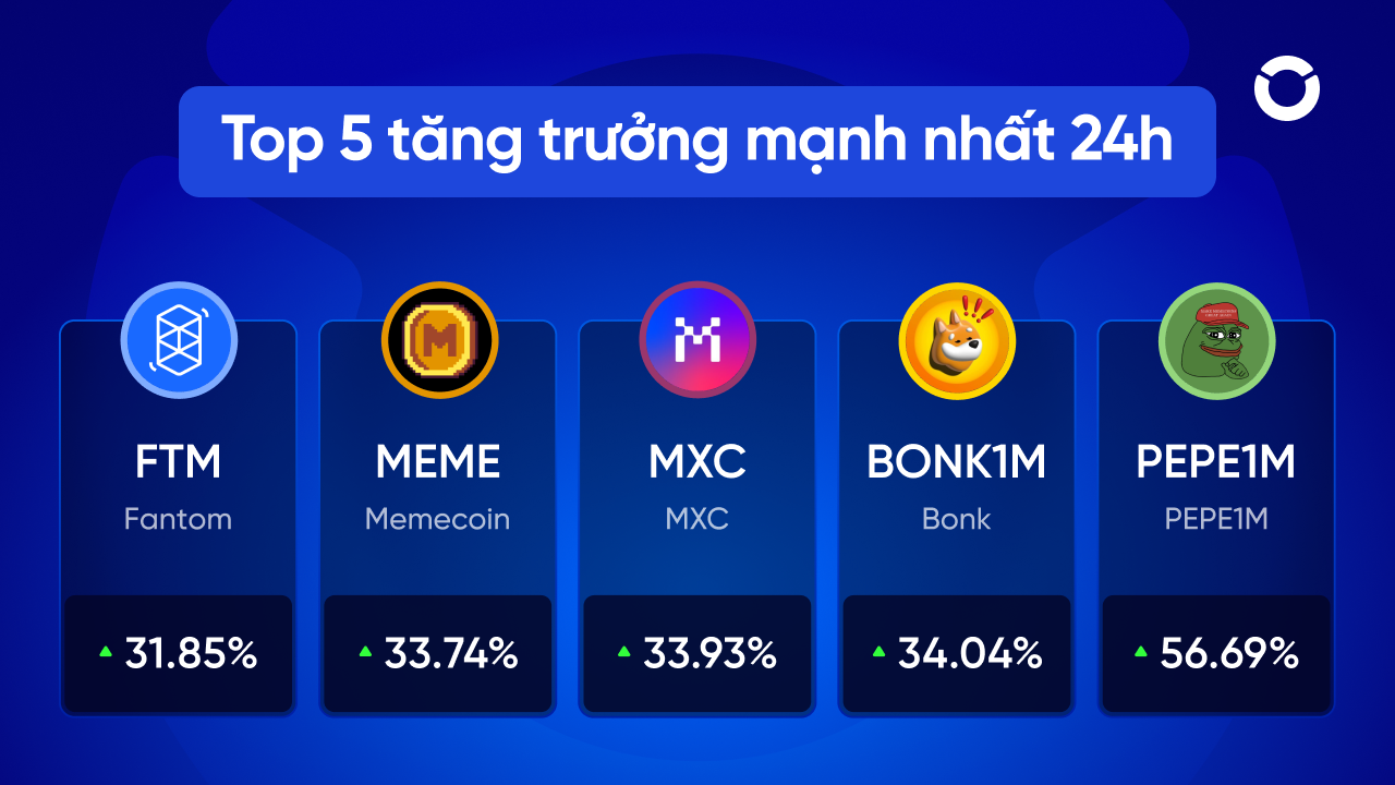 Top 5 tài sản tăng trưởng mạnh nhất 24h