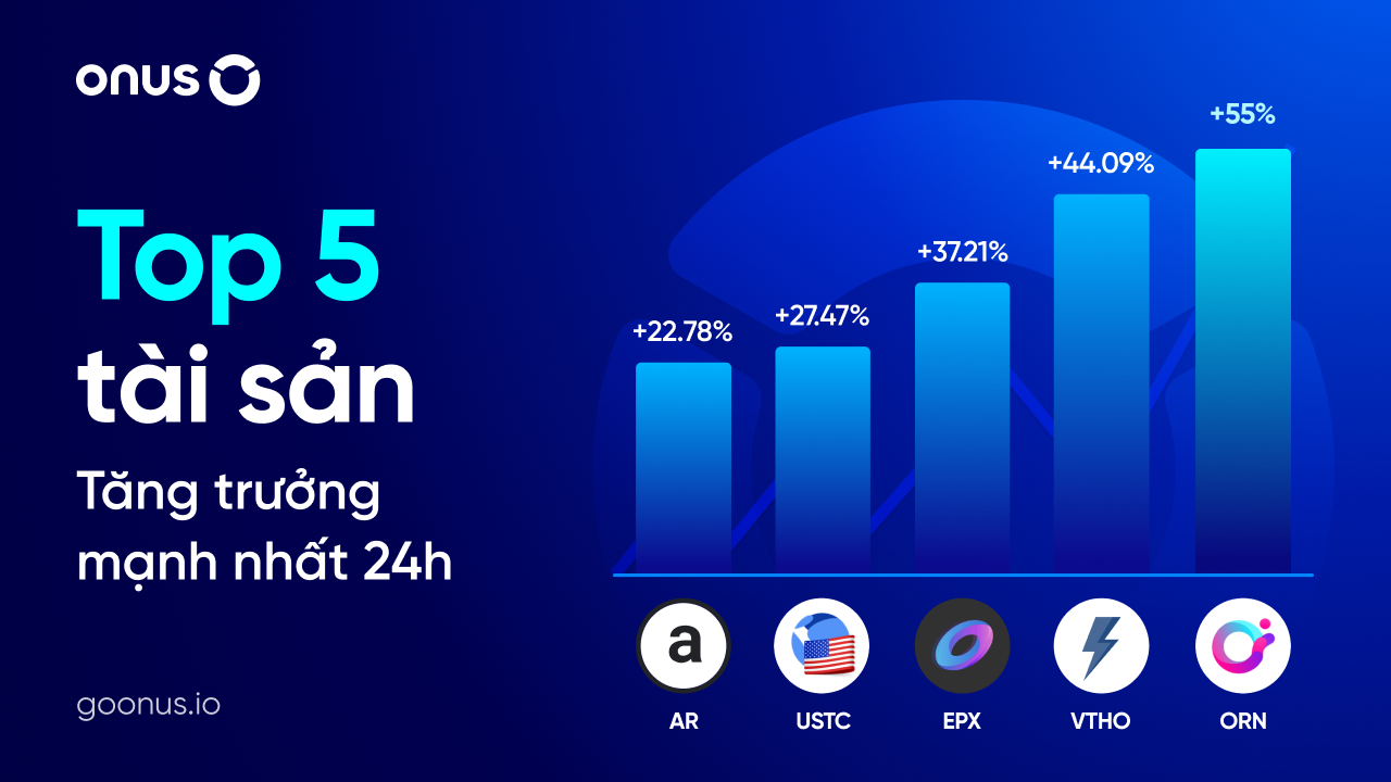 Top 5 tài sản tăng trưởng mạnh nhất 24h qua