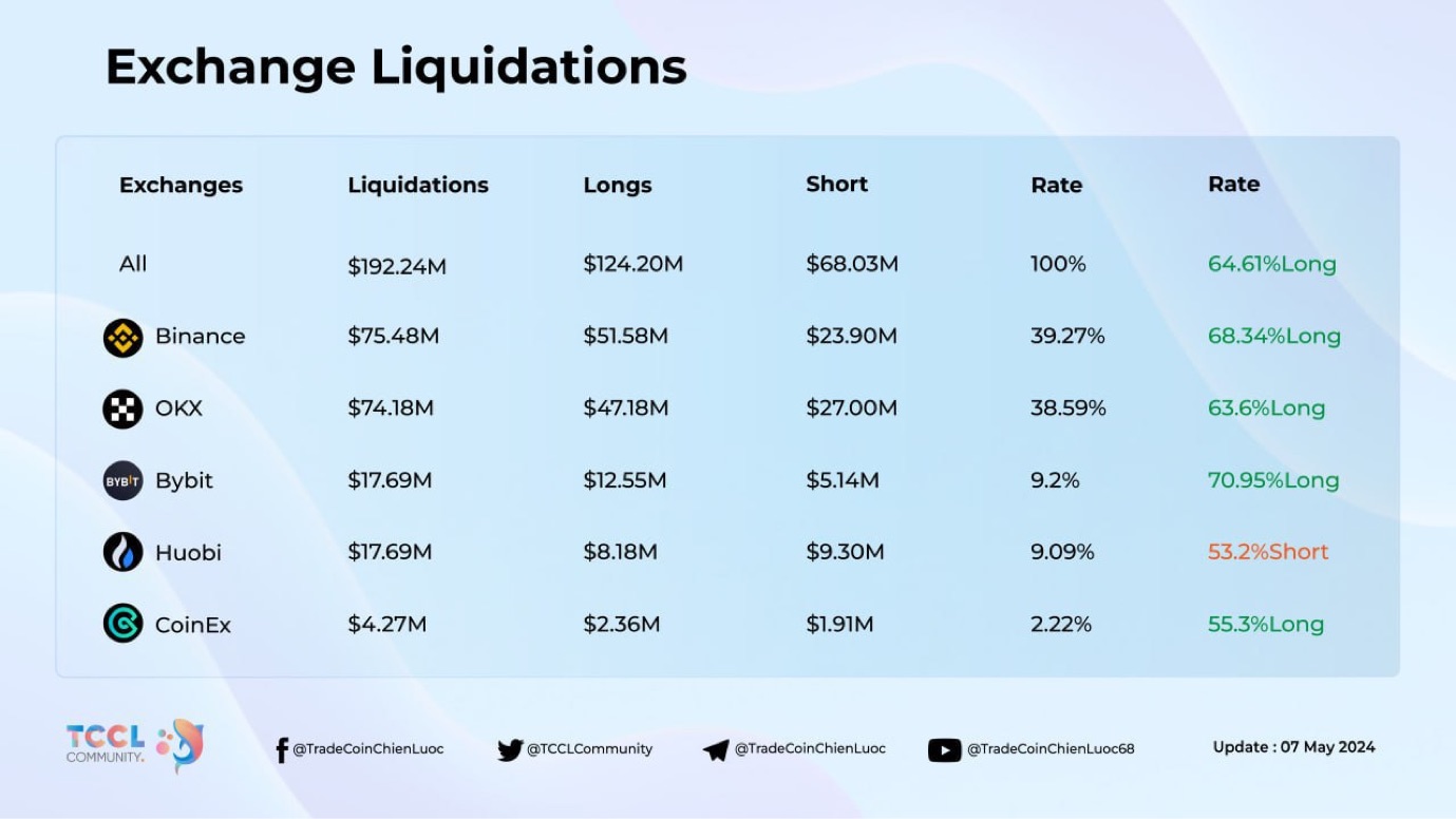 Trong 24 giờ qua, 66.339 trader bị thanh lý, tổng số tiền thanh lý là 192.24 triệu USD. Các mã bị thanh lý hàng đầu gồm: BTC, ETH, WLD,…