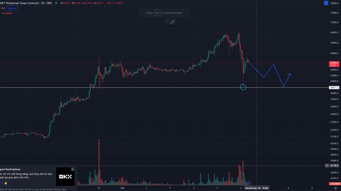 Xu hướng giảm điều chỉnh ngắn hạn, H1 tới đóng dưới 62k thì ưu tiên hồi #Short #altcoin quanh #EMA