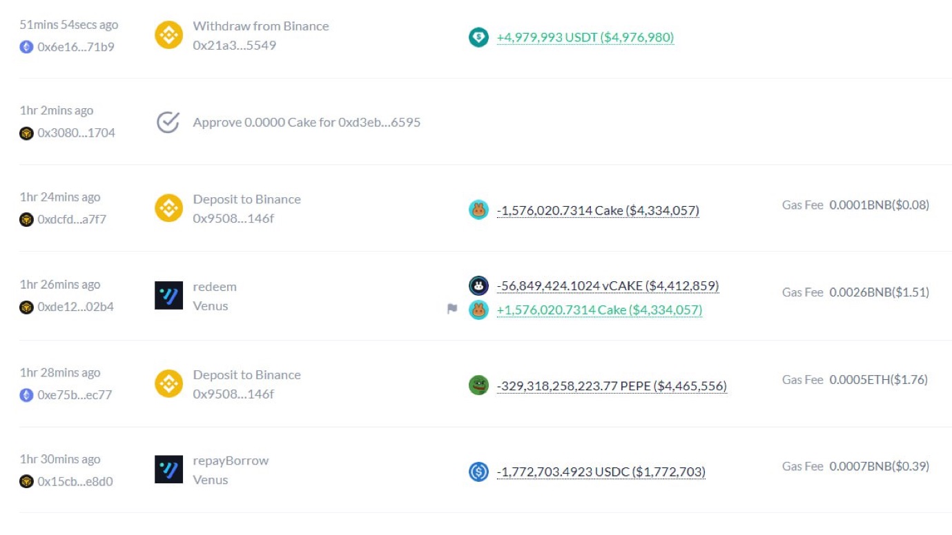 Cùng thời điểm đó họ cũng chuyển lên Binance thêm 1.5M $CAKE ($4.3M)
