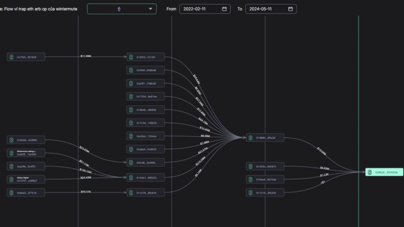 Khi truy lùng các transaction của 2 ví trên thì họ đã từng nhận $ETH từ ví trung gian của #Wintermute vào cuối năm 2022, các layers ví liên quan đều có các flow 10m$-200m$ confirm ví liên quan tới các MM tier