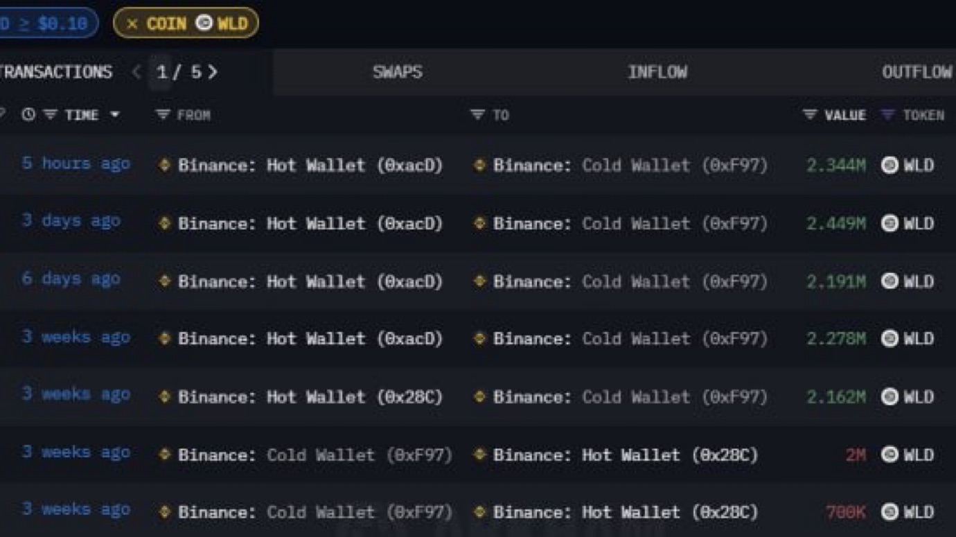 5 tiếng trước, Binance Cold Wallet đã rút 2.344M $WLD = 14.88M$ về ví